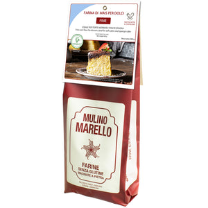 Gluten -freier Maismehl mit Mais im Feinkorn ist ideal für die Zubereitung weicher Desserts wie Kuchen, Pflaumenkuchen und Schwammkuchen.