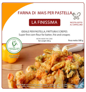 Das feinste Maismehl aus Stein ist ideal für die Zubereitung von Pastellen für Gemüse, Fleisch und Fisch. Auch für köstliche süße Pfannkuchen, Fett und herzhafte Crepes oder Süßigkeiten empfohlen. Das besondere sehr feine Getreide aufgrund von Sieben bedeutet, dass der erhaltene Teig weich, geschwollen, knusprig und angenehm golden ist, für köstliche und gleichzeitig helles gebratenes Essen.