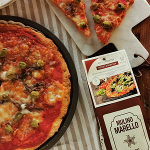 Unsere Mischung aus glutenfreiem Natursteinmehl ist ideal für die Vorbereitung von Pizza und Focaccia. Es enthält keine Verdickungsmittel, Reifen, Zucker oder andere zusätzliche Zutaten.